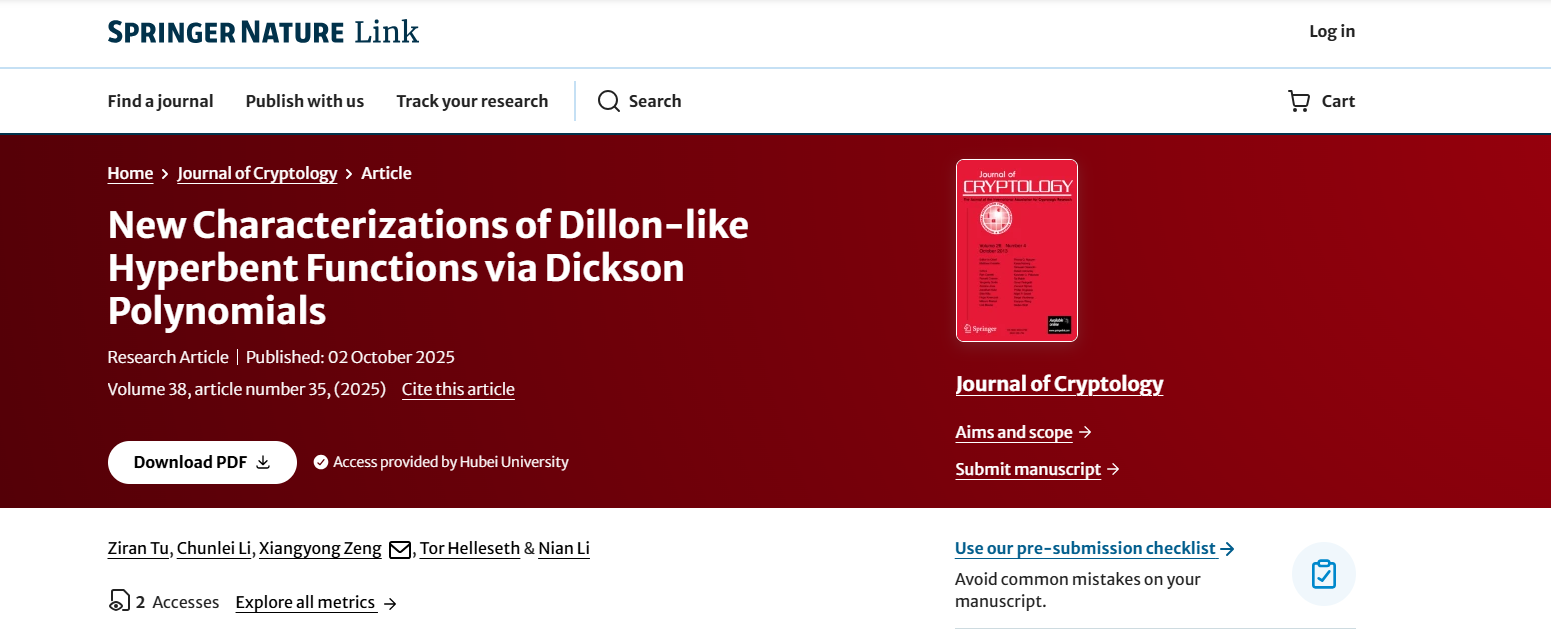 365密码学团队在密码学顶刊《Journal o...