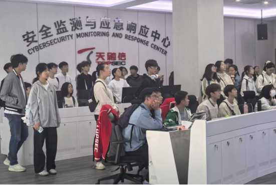 东西湖国家网安基地是国内首个也是唯一的“网络安全学院+创新产业谷”基地,是国家级网络安全人才和创新高地。天融信作为中国领先的网络安全、大数据与云服务提供商,是入驻该基地的核心企业之一。本次参观旨在让学生们“零距离”接触行业前沿,将课堂理论知识与产业实践深度融合。