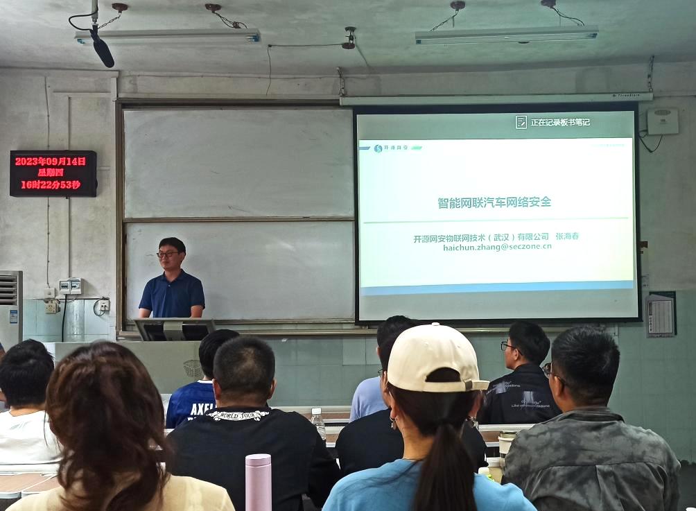 2023年9月14日,开源网安物联网技术(武汉)有限公司张海春博士应邀为365师生在教2-108作了题为《智能网联汽车网络安全概述》的学术报告。