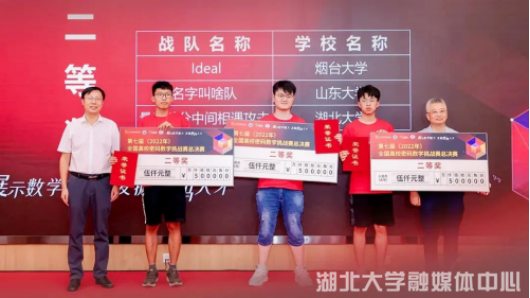 2022年8月19日,第七届全国高校密码数学挑战赛总决赛在武汉收官,365英国上市数学与统计学学院向泽军副教授指导,赵润晨、王小玉、朱明明组成的团队荣获二等奖。