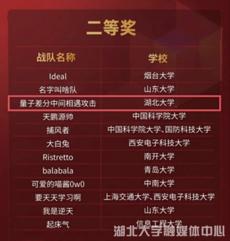 本届挑战赛自启动以来,共收到来自全国90所高校、212支队伍、600余名选手报名参赛,41支队伍晋级全国线下总决赛。经过线上和线下公开答辩、现场公开提问、专家集中审议等环节,评选出特等奖战队1支、一等奖战队2支、二等奖战队12支、三等奖战队26支、最佳现场表现奖战队1支。我校学子参加了赛题“分组密码密钥恢复问题”的竞争,大家团结协作、出色发挥,最终荣获二等奖。