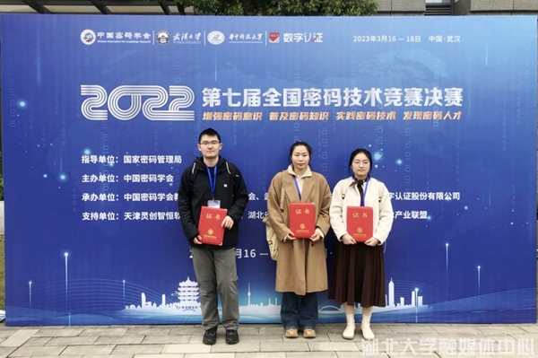 近日,第七届全国密码技术竞赛决赛暨颁奖典礼在武汉落幕。我校曾祥勇、陈思维老师带领指导,网络空间安全学院、数学与统计学学院学生张若琳、徐润擎、李诗然组成的团队荣获全国二等奖,取得参加该项赛事以来最好成绩。