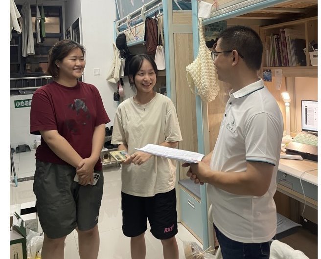 走访过程中,学院领导和辅导员与留校学生进行了亲切交流,询问留校学生在科研、实习、备考、备赛以及社会实践等方面的情况,并针对同学们的假期安排和学习计划提供指导意见。鼓励同学们在备考中合理安排时间,查漏补缺;在实践中及时总结反思,有所成长。同时,仔细查看了宿舍的环境卫生和用电设施,提醒同学们加强用电安全意识,注意防暑降温,加强体育锻炼,保持健康作息。学院党委副书记马兴建强调,学院始终将学生的安全稳定和健康成长放在首位,暑期将持续关心关注留校学生的学习生活情况,及时解决他们遇到的困难和问题,为留校学生创造一个安全、稳定、和谐的学习生活环境。
