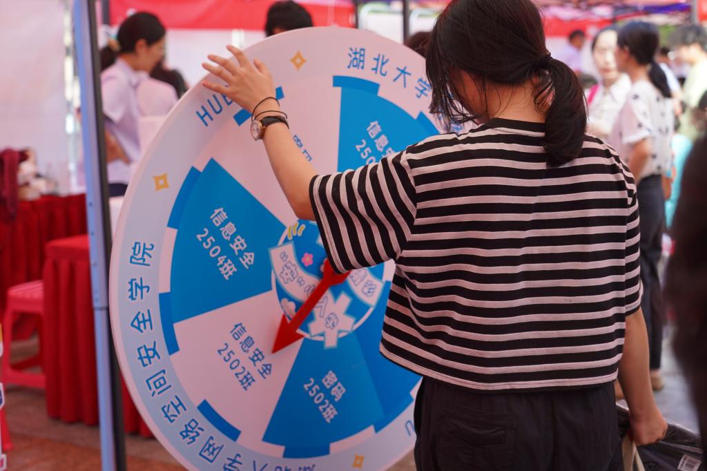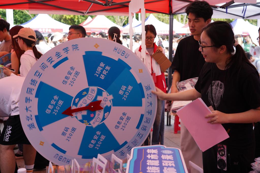 学院特意准备了创意十足的合影框“新学期,向未来!”、“Hi,网安新学子”。一个个有趣的标语,配上你们青春的脸庞,定格下与网安学院的第一张合影。更有趣味互动转盘,转动幸运,收获学哥学姐准备的神秘小礼物,让报到之旅惊喜连连。