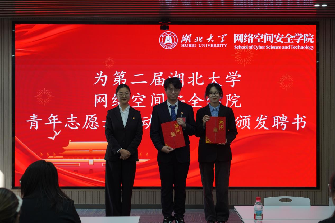 院团委书记朱奎闽为第二届团委副书记、学生会主席团、青年志愿者指导中心主任团颁发聘书并合影留念。