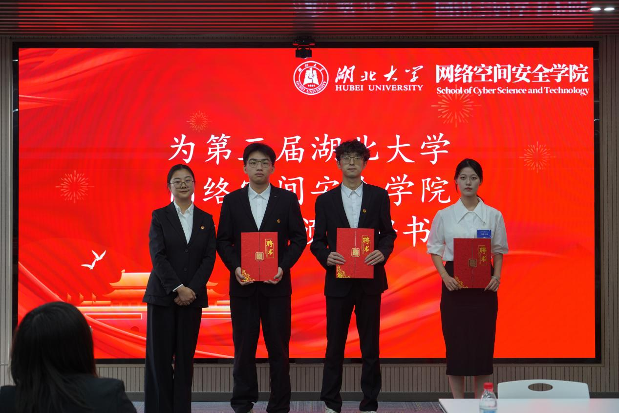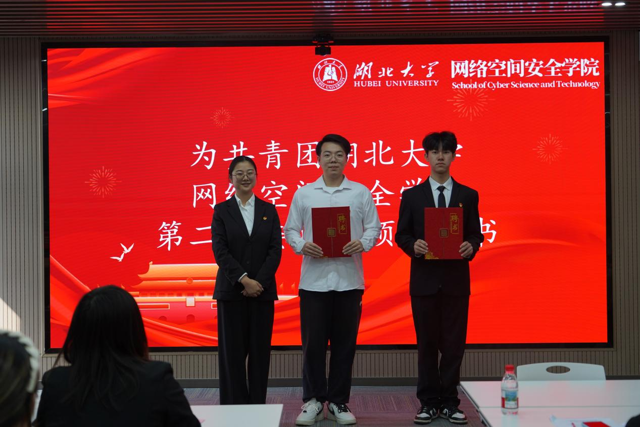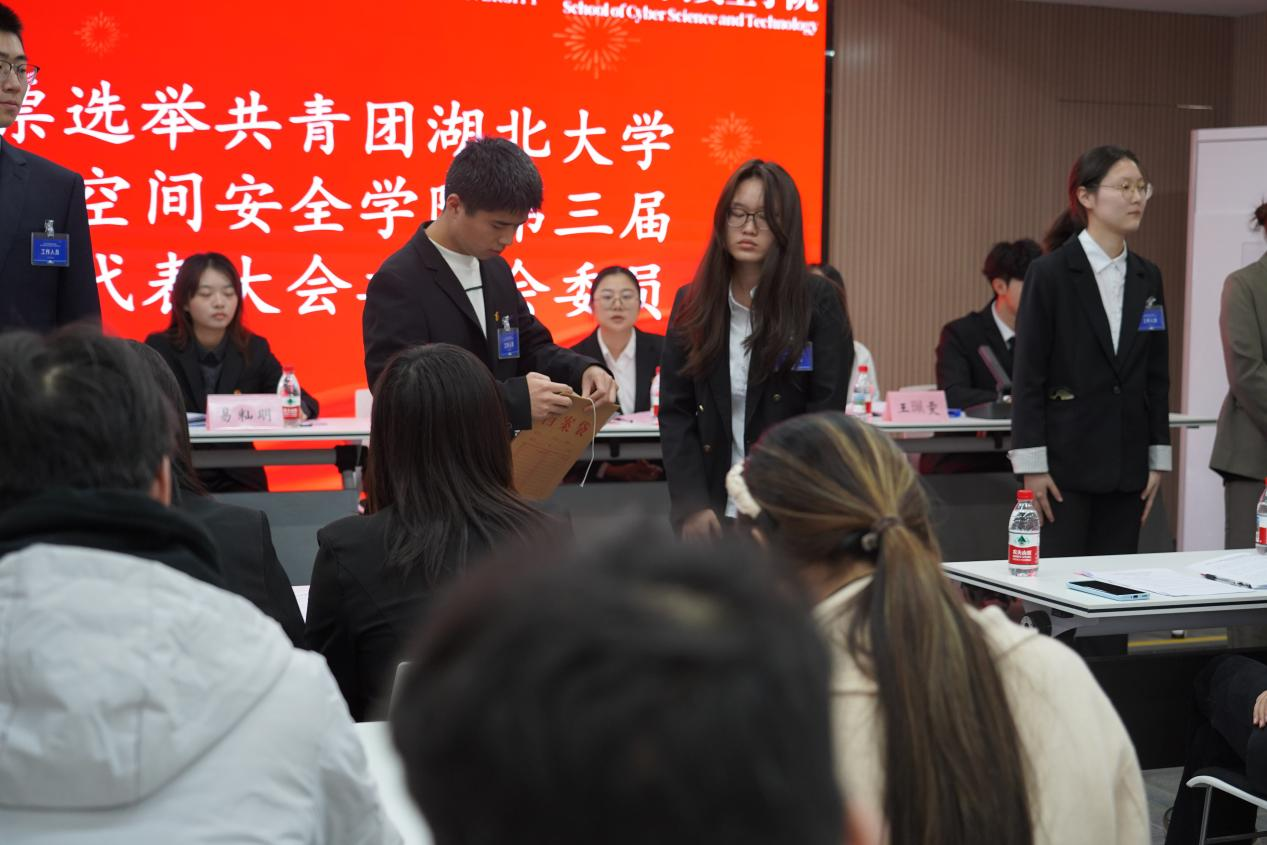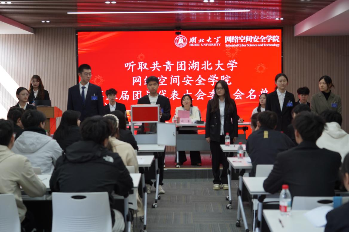 10月22日,网络空间安全学院在双创大楼A座1012报告厅召开了第三次团员代表大会和第三次学生代表大会。本次大会由青年志愿者指导中心副主任姚雨馨、院学生会宣传部成员罗睿莹共同主持。校团委副书记王佩雯、院党委副书记胡蓉、院团委书记朱奎闽、校学生会主席团易籼明、院第二届学生会执行主席黄思源、第二届团委副书记张志吉,学生会主席团成员,各兄弟学院的团委副书记、学生会主席以及学院学生代表出席大会。与会人员齐聚一堂,共商学生工作发展,共绘青春成长蓝图。网络空间安全学院第三次团员代表大会和第三次学生代表大会在庄严的国歌中拉开序幕。