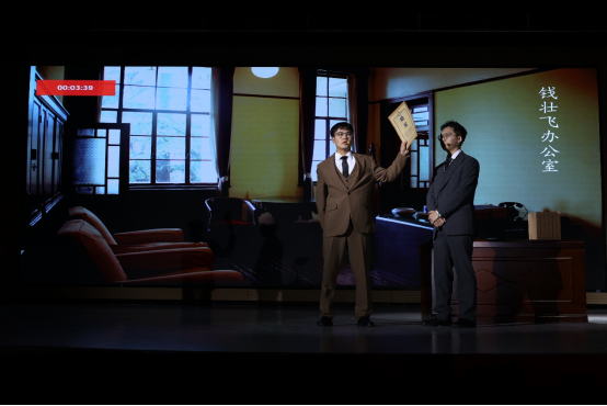 在活力创新展示环节,以钱壮飞在隐蔽战线的英勇事迹为蓝本创作情景剧《无声战线》,通过现代学生视角引入,展现钱壮飞在国民党特务机关潜伏获取情报,与周恩来配合应对危机的英勇事迹,古今交织,体现隐蔽战线从历史到现代网络时代的传承,表达新时代网安战士守护祖国安全的决心与使命。