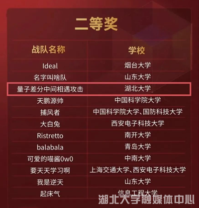 本届挑战赛自启动以来,共收到来自全国90所高校、212支队伍、600余名选手报名参赛,41支队伍晋级全国线下总决赛。经过线上和线下公开答辩、现场公开提问、专家集中审议等环节,评选出特等奖战队1支、一等奖战队2支、二等奖战队12支、三等奖战队26支、最佳现场表现奖战队1支。我校学子参加了赛题“分组密码密钥恢复问题”的竞争,大家团结协作、出色发挥,最终荣获二等奖。