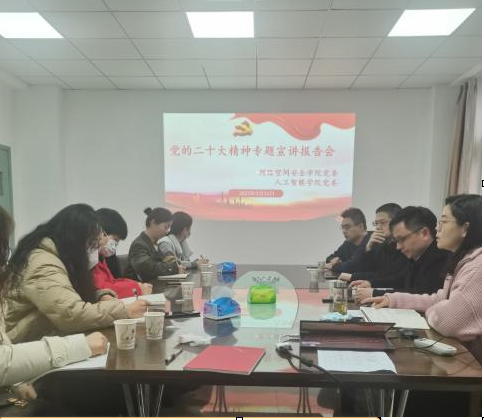 黄江英在总结时强调,学习宣传贯彻党的二十大精神是当前学院工作中的一项重要政治任务,要把贯彻落实党的二十大精神与学习贯彻习近平总书记在两会期间的重要讲话和全国两会精神结合起来;要自觉将学习成果转化为推动学院建设发展的强大动力,坚定信心,奋发有为,扎实推进学院各项工作。与会同志交流学习体会,大家一致认为,要以党的二十大精神引领各项工作,为新工科学院的高质量发展贡献自己的力量。