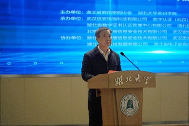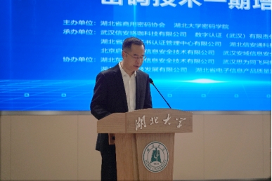 培训期间,华中科技大学网络空间安全学院教授、博导、院党委副书记、副院长、省商密协会副会长徐鹏,湖北东方网盾信息安全技术有限公司商密测评部技术总监曾威受邀分别围绕密码学前沿技术、密评作了主题培训分享。武汉信安珞珈科技有限公司、数字认证(武汉)有限责任公司、湖北省数字证书认证管理中心有限公司、湖北信安通科技有限责任公司、北京启明星辰信息安全技术有限公司、武汉安域信息安全技术有限公司等企业专家进行了商密产品及应用分享。