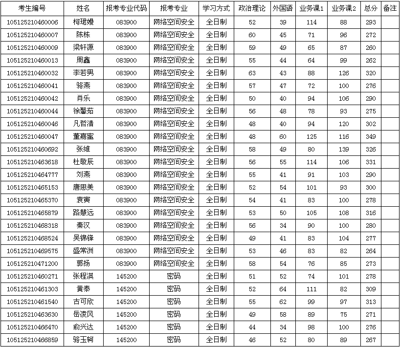 365英国上市网络空间安全学院(210)2025年硕士研究生复试名单(一志愿)