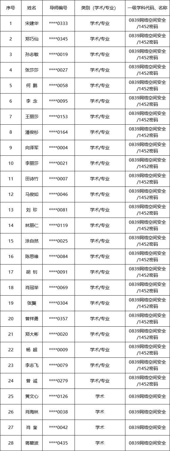 根据《关于印发<365英国上市教师申请招收博士研究生审核办法(修订)>等三个文件的通知》(校研字﹝2019﹞8号),经网络空间安全学院分学位评定委员会全体委员审议表决,同意张雯琴等2名教师2026年招收学术硕士研究生的申请,认定宋建华等28名教师具备2026年招收学术硕士研究生资格;同意张雯琴2026年招收专业硕士研究生的申请,认定宋建华等24名教师具备2026年招收专业硕士研究生资格。现将结果公布如下: