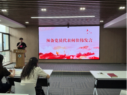 最后,新发展党员代表郑雨薇、何佳伟分别发言,他们表示,站在党旗下庄严宣誓,深感荣幸与自豪,同时也深知肩负的责任与使命,承诺将发扬党的优良传统,牢记全心全意为人民服务的宗旨,不断提升自身能力,勇于担当,冲锋在前,以实际行动践行党旗下的誓言。