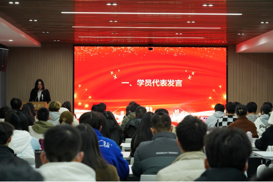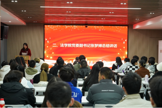 随后,法学院党委副书记张梦婵进行总结发言。她深入总结了本次培训班的积极成效,并指出教学形式多元、学习氛围浓厚。她强调,理论学习与实践锤炼协同并进意义重大,并激励学员们要持续夯实理论根基、深化实践体悟,要将党的先进理论落实到实际行动中去,担当作为、奋勇前行,为实现中华民族伟大复兴的中国梦汇聚磅礴青春力量。