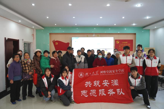 此次反诈宣传活动不仅增强了老年人的网络安全防范意识,也展现了网络空间安全学院学生的社会责任感和担当精神。服务队的同学们表示,他们将继续关注老年人相关领域的网络安全问题,为构建安全、和谐的网络环境贡献自己的力量。活动最后,同学们与社区老年人们以及工作人员合影留念。